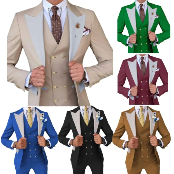 Formal Men’s Formal 3 Piece Slim Fit Suit Blazer Vest and Pant Classic Tuxedo Set Wedding Dresses Formal Party Set Business Prom