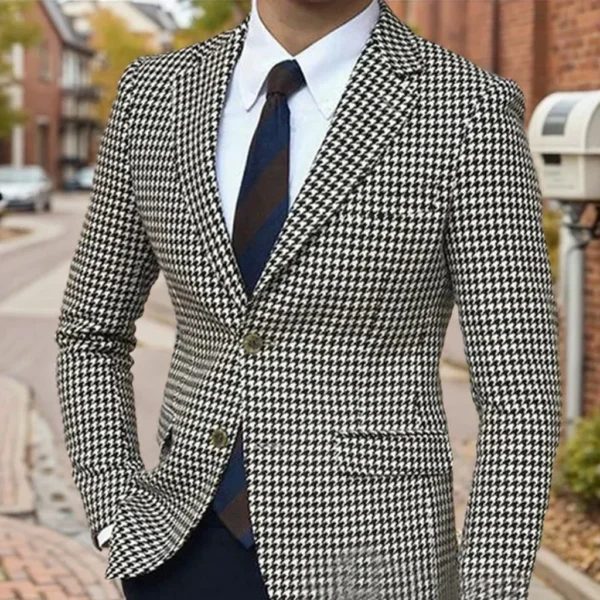 Houndstooth Suits for Men Notched Lapel 2 Pieces Set or Single Blazer Tweed Suit Tuxedo Set for Wedding Business Men’s Suits