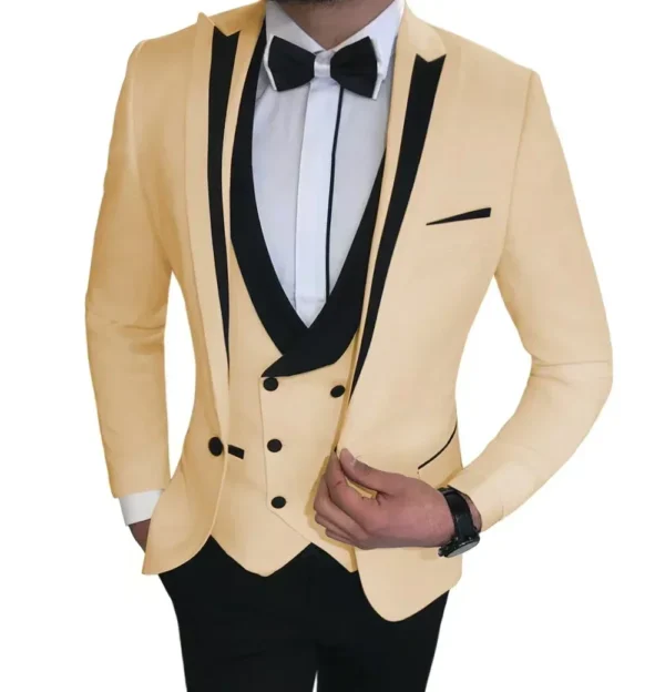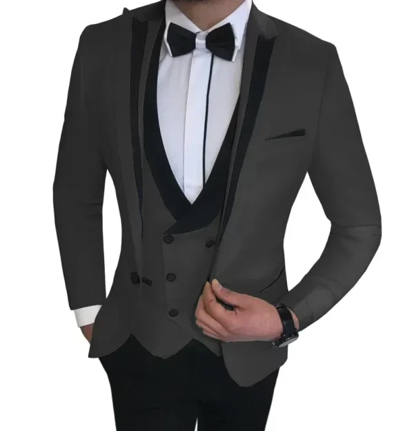 Luxury Suits for Men Formal Peak Lapel Tuxedo Set 3 Pieces Blazer Vest and Pants Set for Business Wedding Evening Party