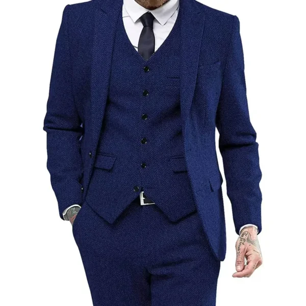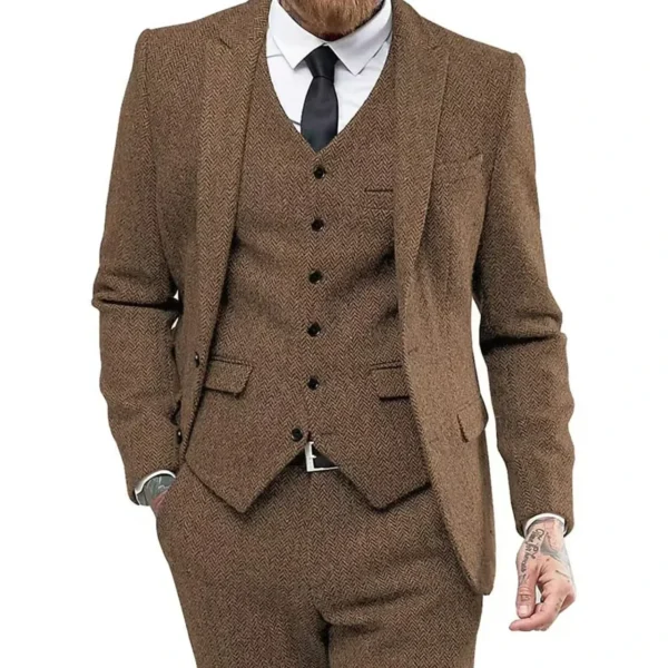Retro Herringbone Suit for Men Stylish Vintage Tuxedo Set 3 Pieces Blazer Vest and Pant Set for Wedding Business Evening Party